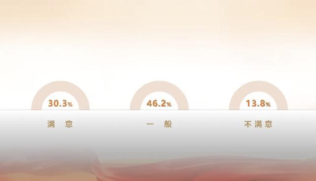 当下,国民对个人阅读状况满意度偏低,从成年国民对个人总体阅读情况的评价看,有 30.3% 的国民表示满意(“非常满意”或“比较满意”);有 13.8% 的国民表示不满意(“比较不满意”或“非常不满意”);另有 46.2% 的国民表示“一般”。